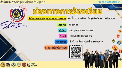 สำนักงานพัฒนาชุมชนอำเภอด่านขุนทด มุ่งมั่นยกระดับองค์กรสู่การเป็น "องค์กรคุณธรรม" โดยยึดถือหลักธรรมาภิบาลและความโปร่งใสในการปฏิบัติงาน เพื่อประโยชน์สุขของพี่น้องประชาชนชาวด่านขุนทดอย่างแท้จริง