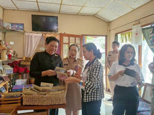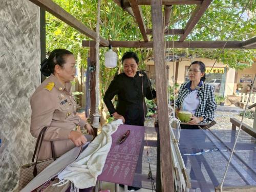 จุดที่ 1 การต่อยอดผลิตภัณฑ์ OTOP : เยี่ยมชม กลุ่มแปรรูปผลิตภัณฑ์จากผ้า (บ้านนางศิริพร หวังดีกลาง) ณ ตำบลตะเคียน ซึ่งเป็นแหล่งผลิตผ้าทออัตลักษณ์ประจำอำเภอ 'ลายพวงมะโหตร' ที่มีความโดดเด่นทางวัฒนธรรม เพื่อส่งเสริมการยกระดับผลิตภัณฑ์ให้เป็นที่รู้จักในวงกว้าง