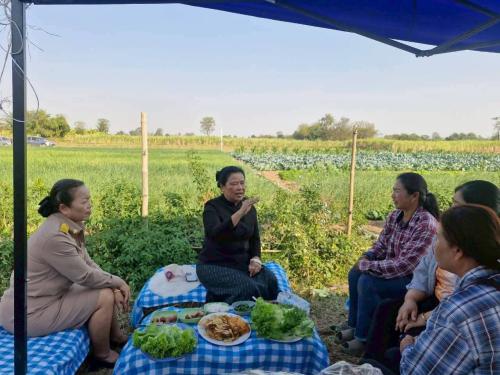 จุดที่ 2 กองทุนพัฒนาบทบาทสตรี : ติดตามกลุ่มอาชีพสมาชิกกองทุนฯ กลุ่มปลูกผักเพื่อการค้าบ้านรวมใจ หมู่ที่ 15 ตำบลหินดาด เพื่อติดตามการบริหารจัดการหนี้และการใช้เงินทุนหมุนเวียนในการสร้างอาชีพและรายได้ที่มั่นคงให้แก่สมาชิก